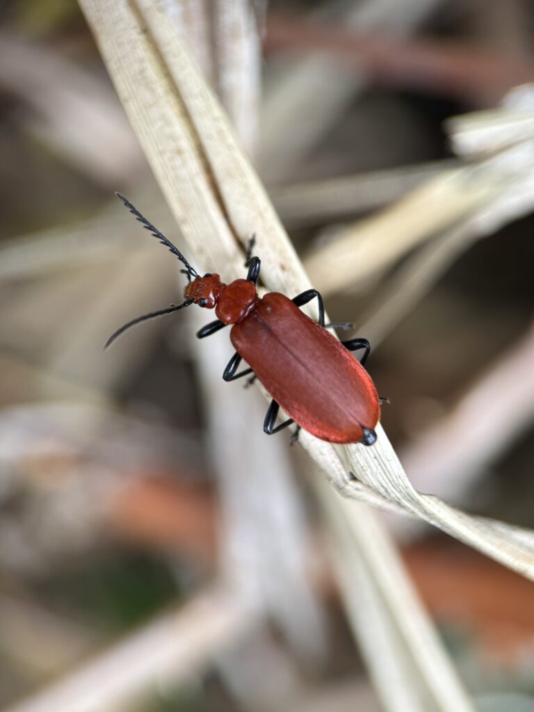 Insects have six legs, although you can’t see them on the Red Underwing on this board, because they are under its wings. On the photo you can see all six legs on a beetle.