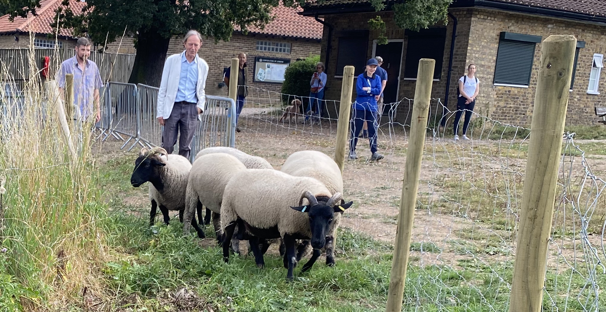 ← Tom Davis of Mudchute Farm and John Beyer bring the sheep to pasture